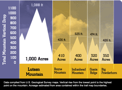 far taller and larger. Lutsen offers 92 sweeping runs over four mountains, each